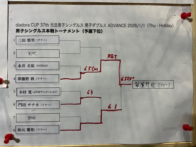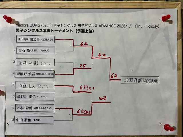 本日の最終試合は男子シングルス決勝戦!