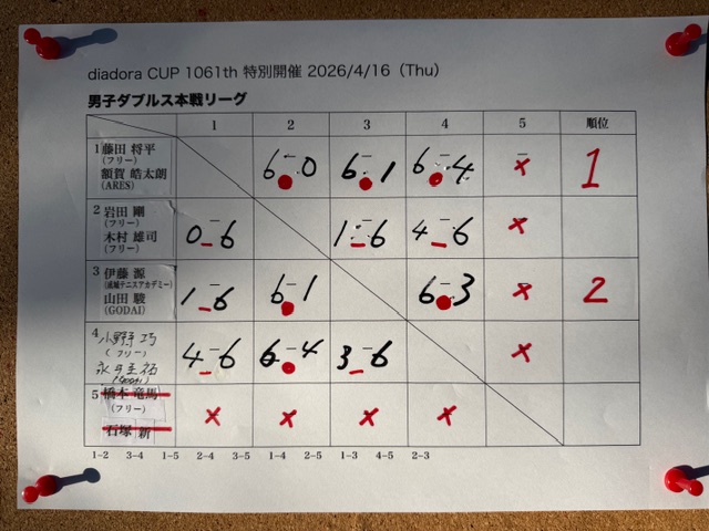 男子ダブルス本戦リーグ戦