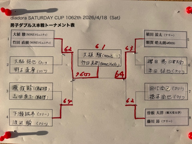 本日の男子シングルス準決勝 ※ 敬称略