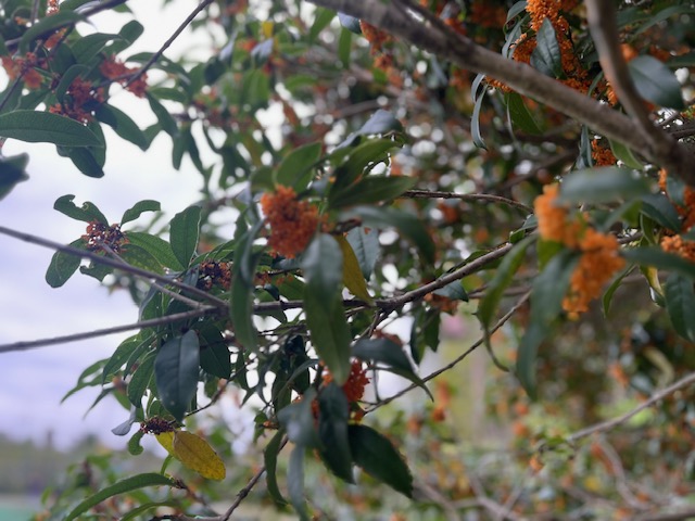 雨にぬれてオレンジがいっそう濃い金木犀